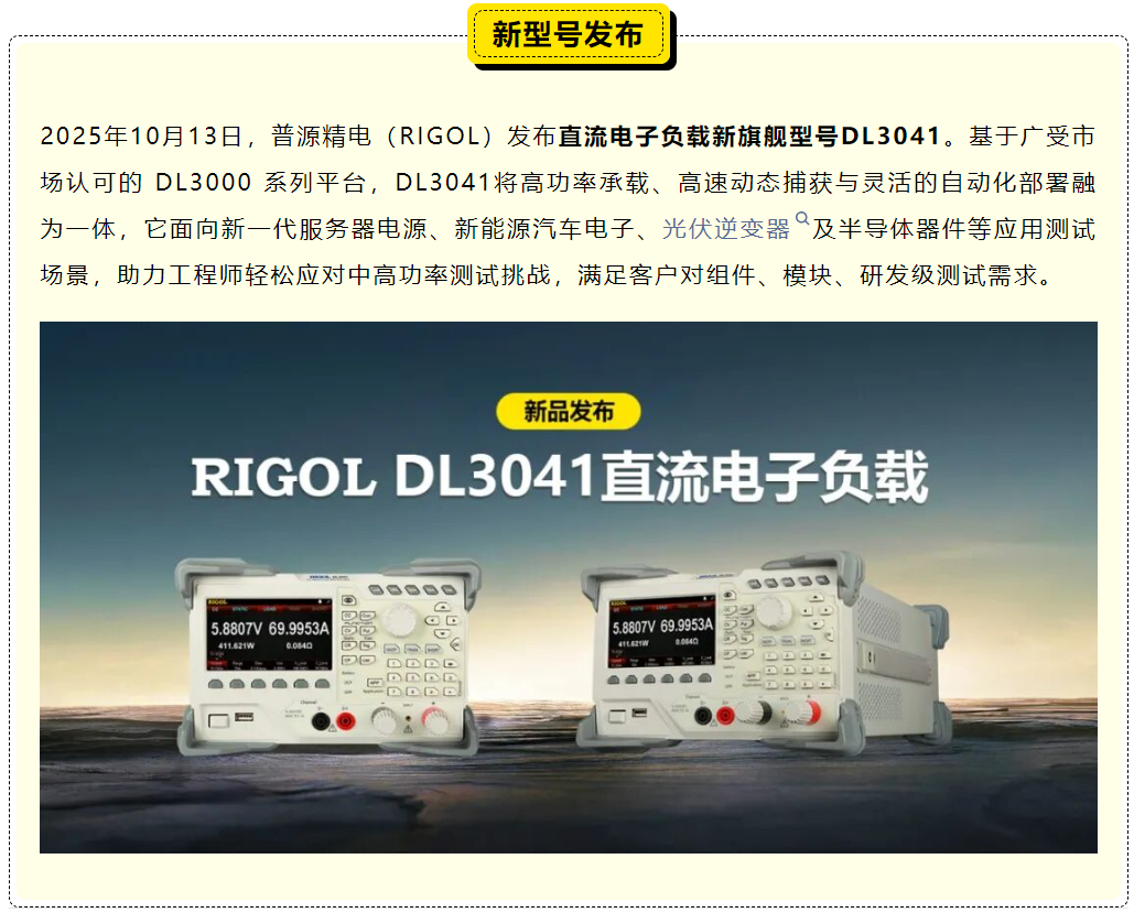 450W/200V性能再进阶 | 普源精电(RIGOL)电子负载新旗舰产品DL3041正式发布