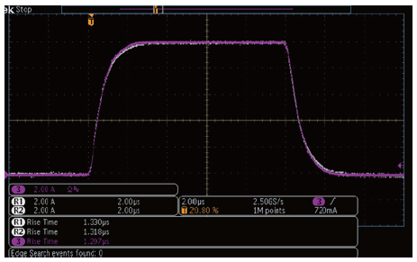 52403P短脉冲SMU具有出色的输高输出转换率和高输出电流Pulser模块,可以输出优异的10A大电流10uS脉冲或是1A电流5uS脉冲。此外,影响电流脉冲上升时间和下降时间的一个主要关键因素是电感。 52403P短脉冲SMU允许来自测试线材和被测物的电感高达3uH,并且仍然能够提供出色的的10A大电流10uS脉冲或是1A电流5uS脉冲。